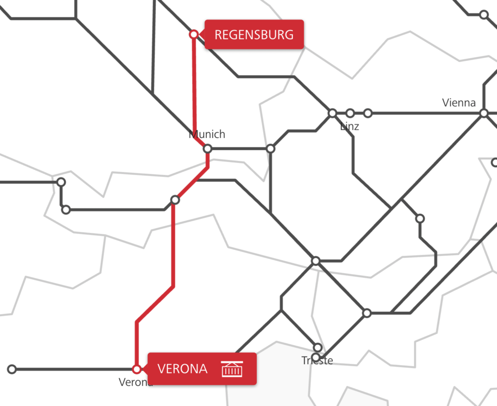 Die ÖBB Rail Cargo Group (RCG) startete am 06.06.2021 eine neue Intermodalzuglinie zwischen dem Terminal in Sommacampagna-Sona bei Verona und dem von Bayernhafen betriebenen Trailerport in Regensburg.