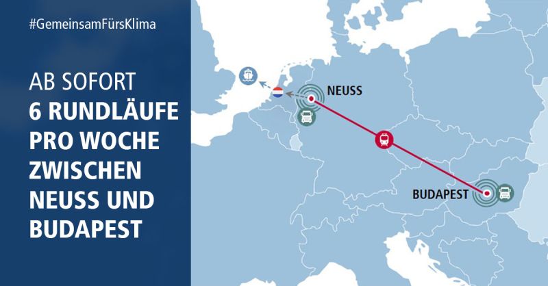 Die ÖBB Rail Cargo Group (RCG) und die Kombiverkehr KG haben ihre Schienengüterverkehrsverbindung zwischen der ungarischen Hauptstadt Budapest und Neuss „weiter optimiert“. Ab sofort verbinden sechs Rundläufe pro Woche, aufgeteilt auf sechs Werktage, die beiden wichtigen Wirtschaftszentren in Europa auf der Schiene. Bei drei in Partnerschaft von Kombiverkehr und Rail Cargo Operator (RCO) betriebenen Verbindungen werden in beiden Richtungen auch die Terminals in Wels und Wien Süd angebunden. Die weiteren drei Verbindungen werden direkt und ohne Zwischenstopp von der RCG von Budapest nach Neuss und zurück betrieben.