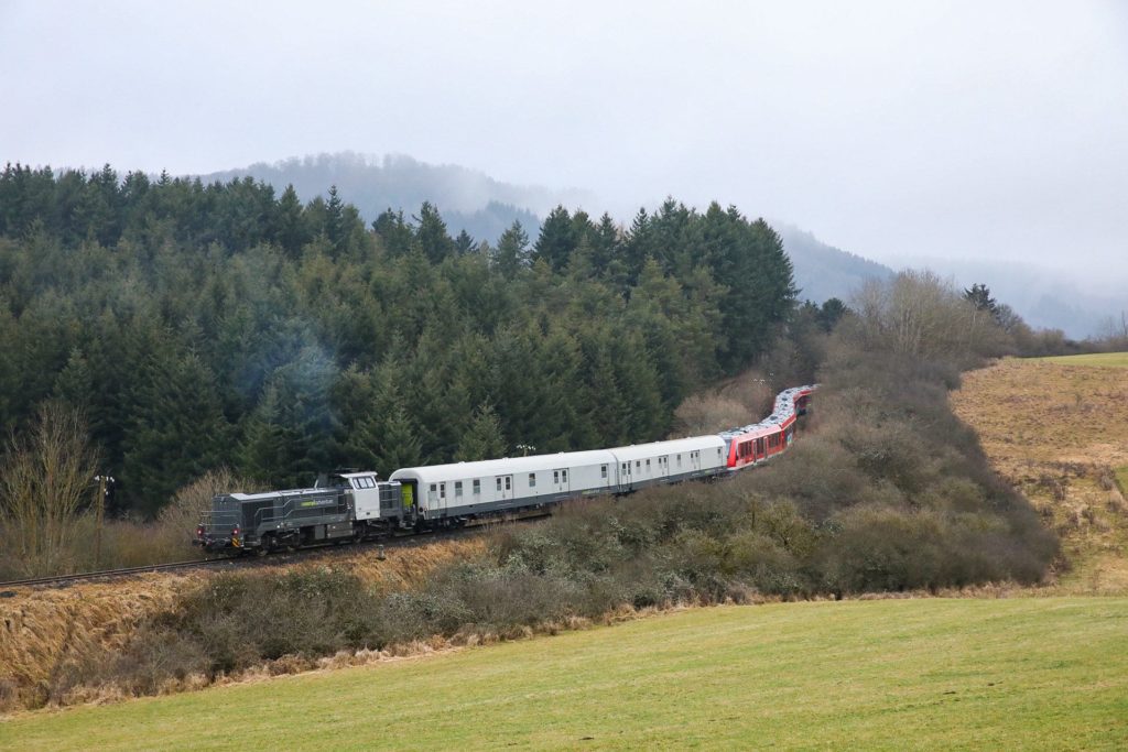 RailAdvernture hat am 22. bzw. 24.01.2022 mehrere beim Hochwasser 2021 beschädigte Nahverkehrstriebwagen der DB Regio aus Gerolstein abgefahren. Da die „reguläre Bahnstrecke“ Euskirchen – Trier immer noch nicht befahren werden kann, erfolgte die Evakuierung der Fahrzeuge über die eigens hierfür reaktivierte „Eifelquerbahn“ Gerolstein – Kaisersesch.