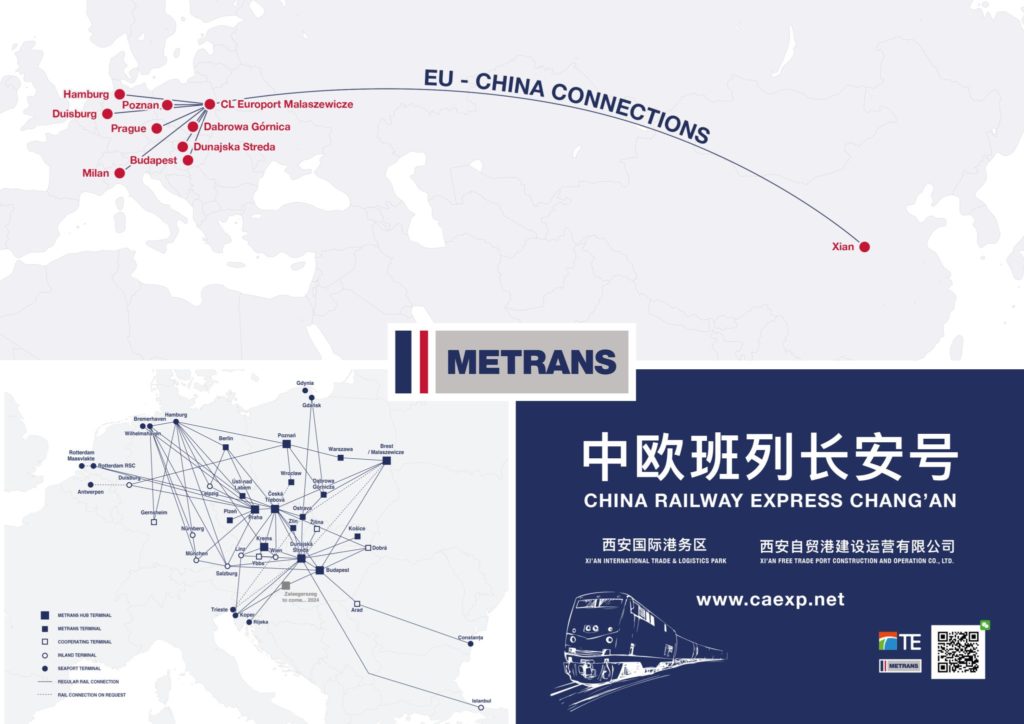 METRANS ist offizieller Partner der Chang’An-Züge aus der Provinz Shaanxi / Xi’an nach Europa. Die METRANS Hub-Terminals in Ceska Trebova (Tschechien), Budapest (Ungarn) und Malaszewicze in Polen wurden die offiziellen Partnerterminals für Chang’An und METRANS bedient sie zusammen mit Beijing TransEurasia auf ihrer Route von und nach China.