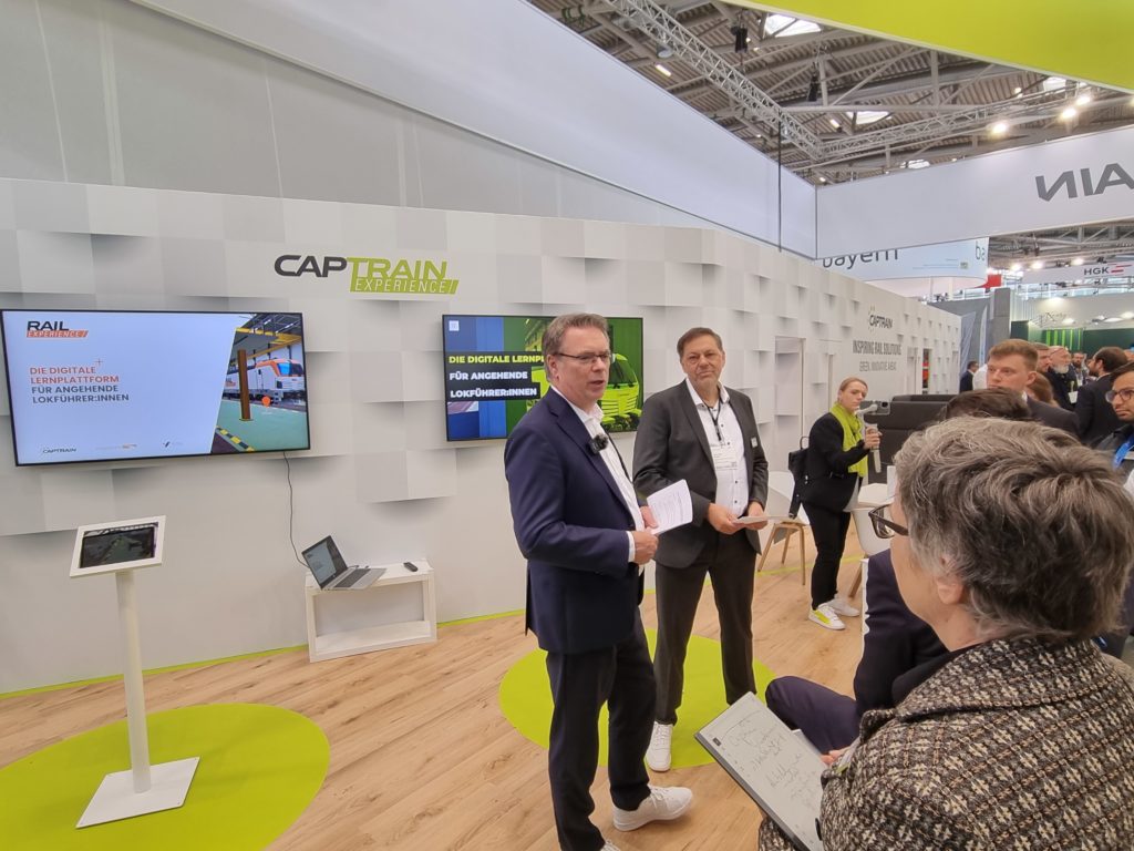 Der Schienenlogistiker Captrain und der Mönchengladbacher Bildungsanbieter Wegesrand stellten auf der „transport logistic“ Messe in München erstmals die digitale Lernumgebung „Rail Experience“ vor. Mithilfe der neu entwickelten App können angehende Lokführer in einer begehbaren 3D-Welt die Inhalte der Ausbildung zum Eisenbahner im Betriebsdienst nachvollziehen und ortsunabhängig lernen. Begonnen wurde das Projekt bereits im Jahr 2020, das Programm wurde in enger Zusammenarbeit mit dem Captrain-Ausbildungszentrum entworfen und weiter entwickelt.