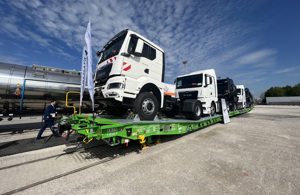 Gemeinsam mit Tatravagónka hat der Automobillogistiker Hödlmayr einen neuen Waggon entwickelt, der Zugmaschinen sowie leichte bis schwere Nutzfahrzeuge auf der Schiene transportiert.