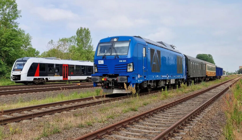 Am 17.06.2023 war die 248 023 der SKL Schienen Komplex Logistik Magdeburg mit Salzlandexpress-Wagen der Eisenbahnfreunde vom Traditionsbahnbetriebswerk Staßfurt zu Besuch in Teuchern. Dort wurde erstmals seit vielen Jahren wieder die Anschlussbahn „Obernessa“ befahren, um Lokalpolitikern und Anwohnern die Möglichkeit zu geben, sich ein Bild über die Gegebenheiten und Perspektiven der Anschlussbahn der Gemeinde Teuchern zu verschaffen.