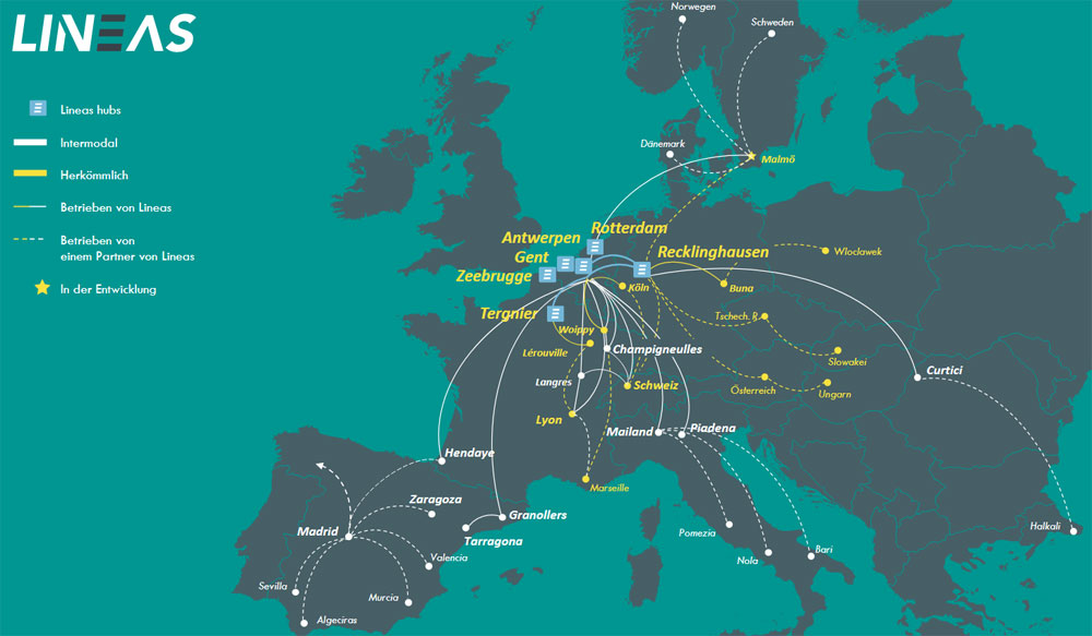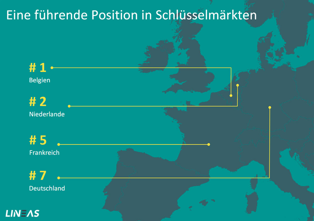 Der Manager sieht sein Unternehmen als sehr gut positioniert an: „Stärken von Lineas: Lage, Lage, Lage“. In den Seehäfen Antwerpen, Zeebrugge, Gent und Rotterdam als Quelle und Senke von Transporten sei das Unternehmen mit „einer starken Präsenz“ vertreten.