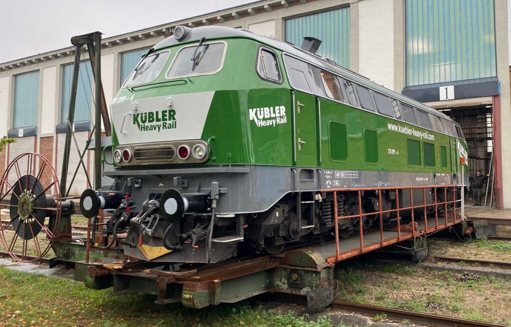 Kübler Heavy Rail (KHR) hat der eigenen Lok 218 399 ein neues, grünes Farbkleid verpasst. Zuvor trug die Maschine noch das verkehrsrote Farbkleid aus DB-Zeiten.
