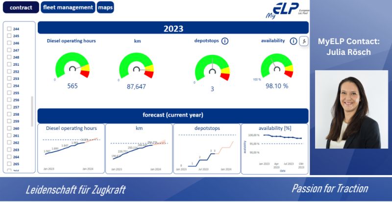 European Loc Pool (ELP) führt das Kundenportal „MyELP“ seit Anfang Dezember 2023 schrittweise ein. Laut dem Vermietunternehmen ist es „das erste Unternehmen für das Leasing von Schienenfahrzeugen, das ein Portal vorstellt, das vollständige Transparenz über Wartungs-, Werkstatt-, Vertrags- und Fahrzeugdaten bietet.“ Rückfragen bei weiteren Marktteilnehmern ergaben dass diese entgegen dieser Aussage über vergleichbare und bereits eingeführte Tools verfügen.