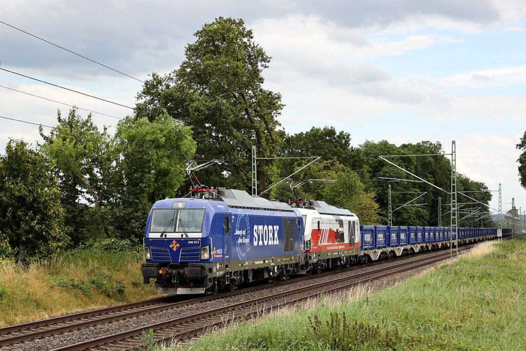 Die Mindener Kreisbahnen (mkb) haben im April 2024 den Transport von Kesselasche aus Freiburg im Breisgau für den Kunden STORK Umweltdienste aufgenommen. Übergangsweise erfolgt die Umladung der Mulden mit einem Autokran an der Ladestraße im nahen Neuenburg (Baden).