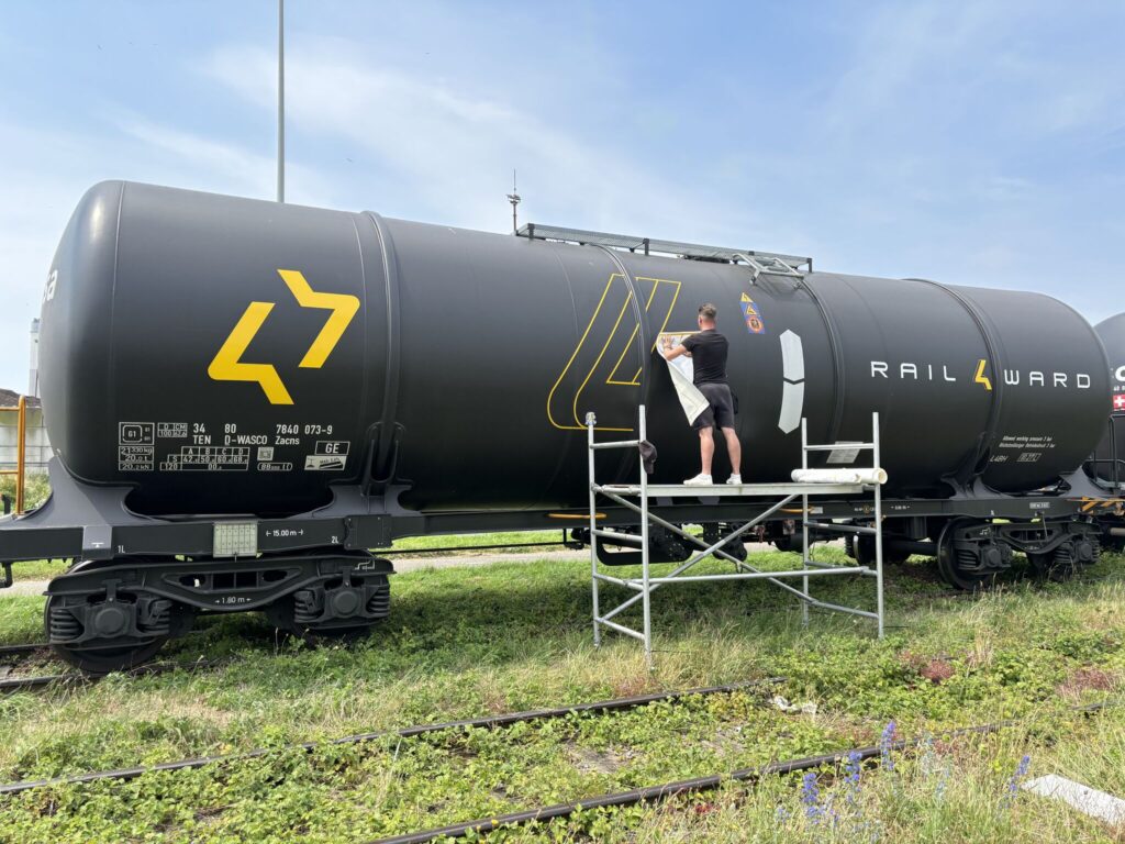 Das niederländische Logistikunternehmen Rail4Ward hat seine von Wascosa gemieteten Zacns im Firmendesign beklebt.