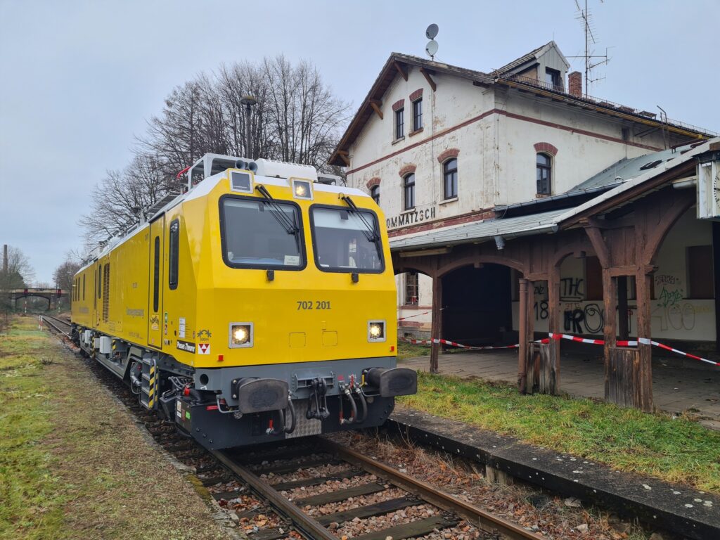 Nach etlichen Jahren erreichte am 16.01.2025 mit dem Fahrwegmesszug 702 201 der DB erstmals wieder ein Eisenbahnfahrzeug den Bahnhof Lommatzsch an der Strecke Riesa – Nossen. Der letzte Personenzug war am 23.05.1998 gefahren, ab dem 11.12.2000 war auch kein Güterverkehr zwischen Riesa und Starbach mehr möglich, da für einen Neubau der Bundesstraße 169 die Bahnstrecke bei km 1,16 in Riesa unterbrochen wurde. Am 31.12.2007 wurde der Abschnitt vom Anschluss Tanklager Rhäsa bis Riesa offiziell stillgelegt.