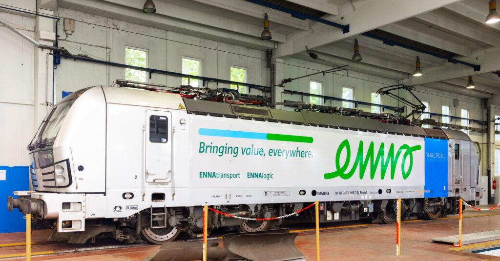 ENNAtransport hat die von Railpool gemietete 6193 095 an den Seiten beklebt.