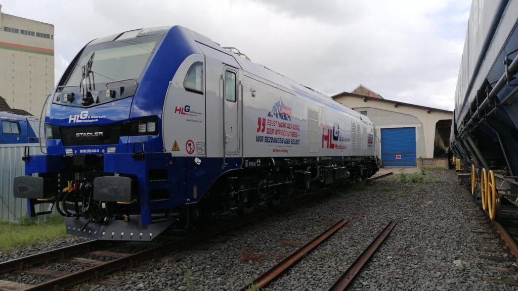 Die fabrikneue 2159 446 der Holzlogistik und Güterbahn (HLG) erhielt eine Beklebung im Firmenlayout.