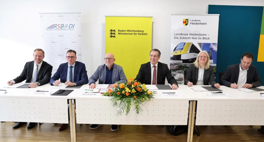Das Land Baden-Württemberg, der Landkreis Heidenheim, der Ostalbkreis, die Stadt Ulm und die Deutsche Bahn unterzeichnen am 06.11.2025 eine Finanzierungsvereinbarung zur Vorplanung sowie Entwurfs- und Genehmigungsplanung für den Ausbau und die Elektrifizierung der aktuell noch durchgehend eingleisigen Brenzbahn Aalen – Ulm.