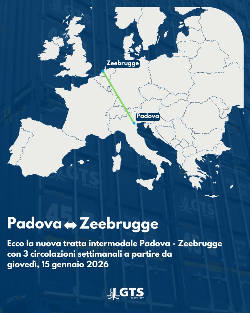 Der italienische Intermodaloperateur General Transport Service (GTS) startet am 15.01.2026 die neue Relation Padova (Interporto) – Zeebrugge (CLdN). Die zunächst drei Umläufe pro Woche sollen im zweiten Quartal 2026 auf fünf verdichtet werden.