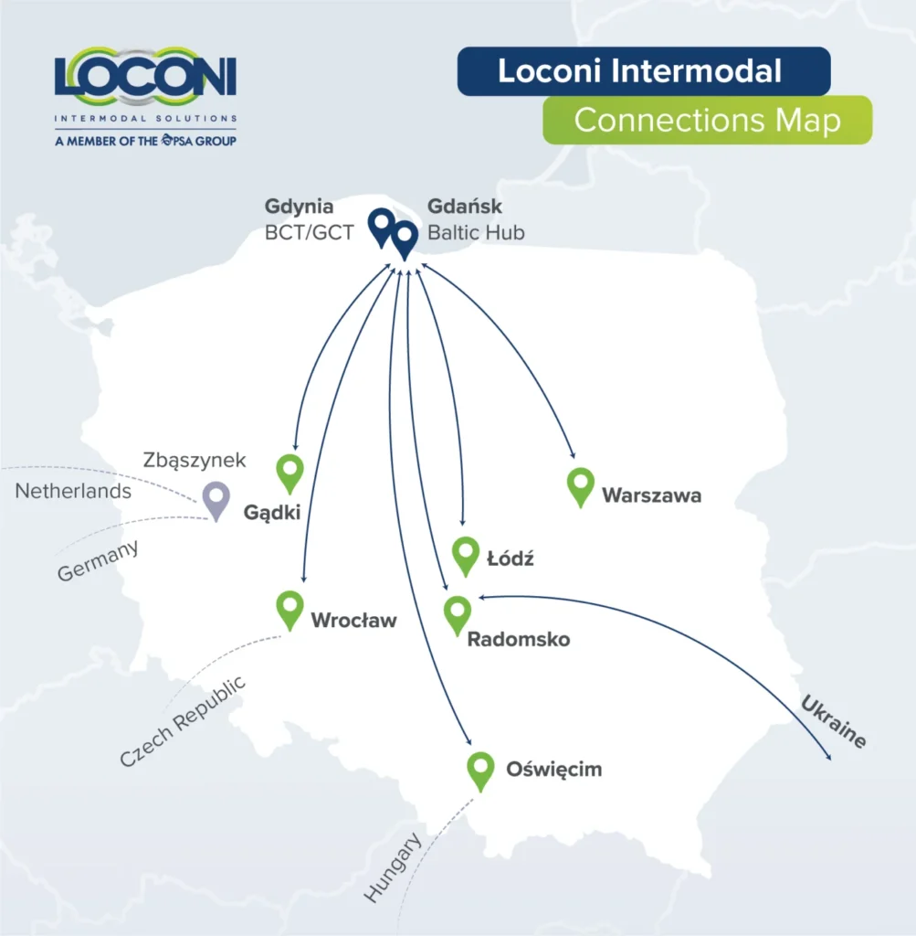 Captrain Polska vermeldet die Übernahme der Traktion der Züge Wrocław Swojczyce (Terminal Morado) – Gdańsk (Baltic Hub) für Loconi Intermodal mit fünf Rundläufen pro Woche. Vorgänger war LTG Cargo Polska.