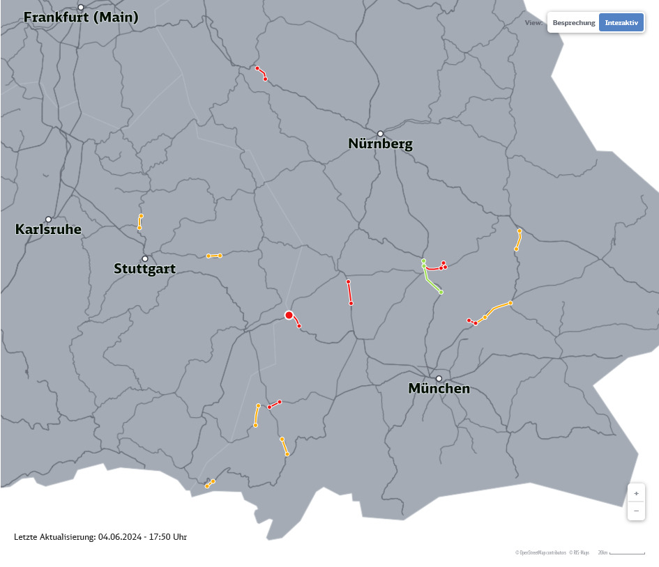 Infolgedessen sind im genannten Zeitraum Umleitungen und Ausfälle im Schienenpersonenfern- (SPFV) und Güterverkehr (SGV) erforderlich. Im Schienenpersonennahverkehr (SPNV) kommt es zu Ausfällen und Teilausfällen.
