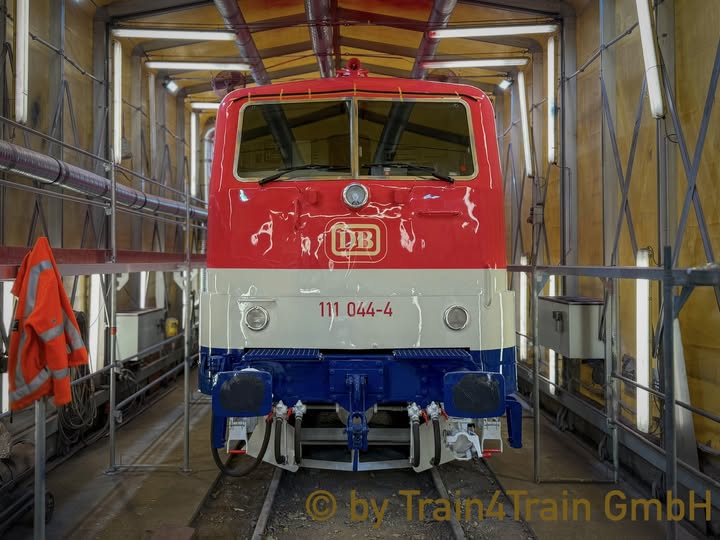 Train4Train hat seine 111 044 im Layout einer am 23.09.1985 auf der 111 069 präsentierten Versuchsfarbgebung lackieren lassen. Die Umsetzung erfolgte beider GfF Gesellschaft für Fahrzeugtechnik in Crailsheim.