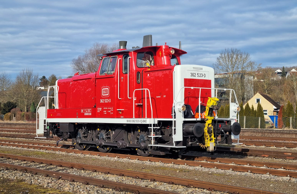 362 523 der BKE Eisenbahn-Service hat zum Jahresende eine neue Hauptuntersuchung (HU) in Mannheim und eine Lackierung in Saarbrücken erhalten. Zuvor trug die Lok noch den verkehrsroten Lack des Voreigentümers DB.