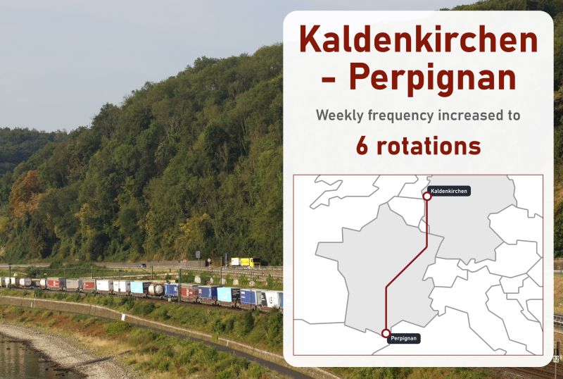Ein Jahr nach dem Start erhöht CargoBeamer die Frequenz zwischen Kaldenkirchen und Perpignan im Januar 2023 von fünf auf sechs Umläufe pro Woche. Die Traktion übernimmt DB Cargo.