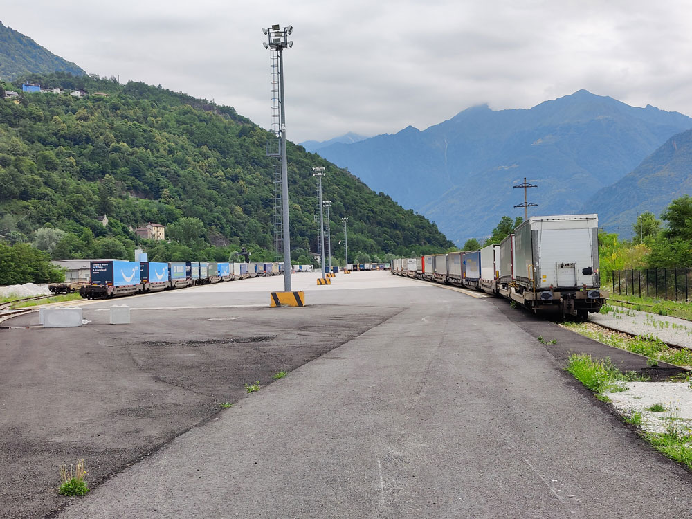 Seit Anfang September 2023 sind im CargoBeamer-Terminal in Domodossola Bauarbeiten zur Erweiterung der Kapazität abgeschlossen. CargoBeamer hatte das Grundstück im Jahr 2021 erworben und seit März 2022 erste Züge per Reachstacker abgefertigt.
