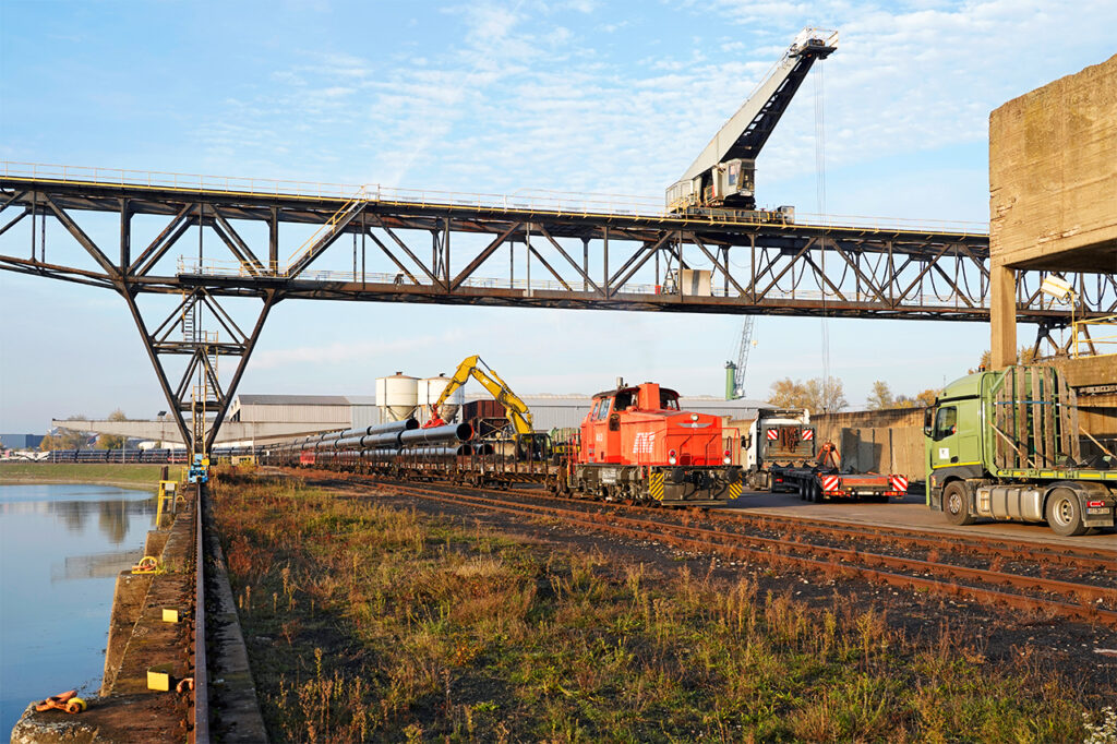 DB Cargo fährt seit Oktober 2025 für die neue Süddeutsche Erdgasleitung (SEL) der terranets bw mehrmals wöchentlich Ganzzüge mit speziellen „H2 ready“ Pipelinerohren des Herstellers Europipe aus Mülheim (Ruhr) nach Mannheim. Im Rheinauhafen werden die Rohre bei Kübler auf Lkw umgeschlagen und anschließend zu verschiedenen Rohrlagern entlang der Trasse transportiert. Für den südlicheren Abschnitt der Erdgasleitung liefen zuvor bereits Ganzzüge nach Heilbronn.