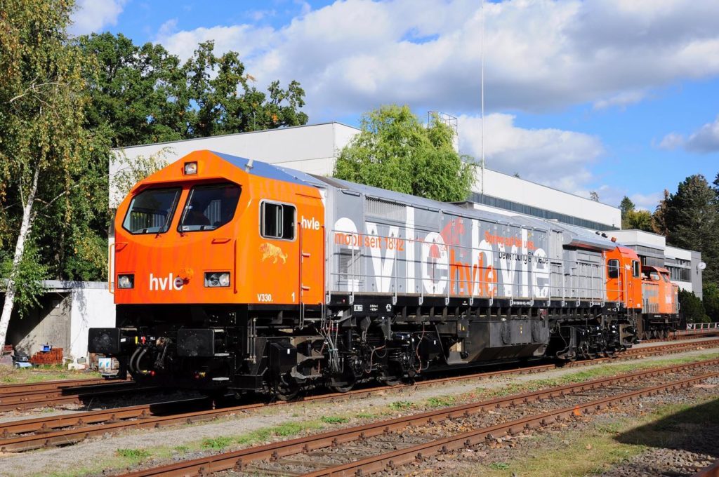 Die Havelländische Eisenbahn (hvle) hat die im am 21.03.2018 mit einem Brandschaden abgestellte Diesellok V330.5 wieder in Betrieb genommen. Die zuvor Rot lackierte Maschine ist nun in den hvle-Farben Orange und Silber gehalten.