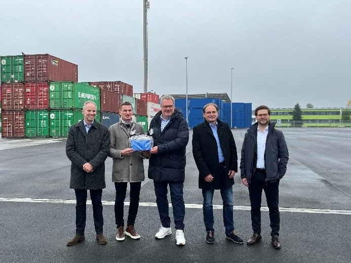 Rund ein halbes Jahr nach dem Spatenstich und damit voll im Zeitplan konnte im Emmericher Hafen jetzt die Eröffnung der Erweiterungsfläche gefeiert werden. Auf dem 8.000 Quadratmeter großen Areal wurden Stellplatzkapazitäten und Umschlagmöglichkeiten für Container geschaffen. So trägt der Emmericher Hafen der Entwicklung in der globalen Logistik Rechnung. Betreiber der Erweiterungsfläche – wie des gesamten Containerterminals – ist die Contargo Rhein-Waal-Lippe GmbH. Die rund vier Mio. EUR teure Maßnahme wurde vom Bund im Rahmen der Richtlinie für Kombinierten Verkehr gefördert.