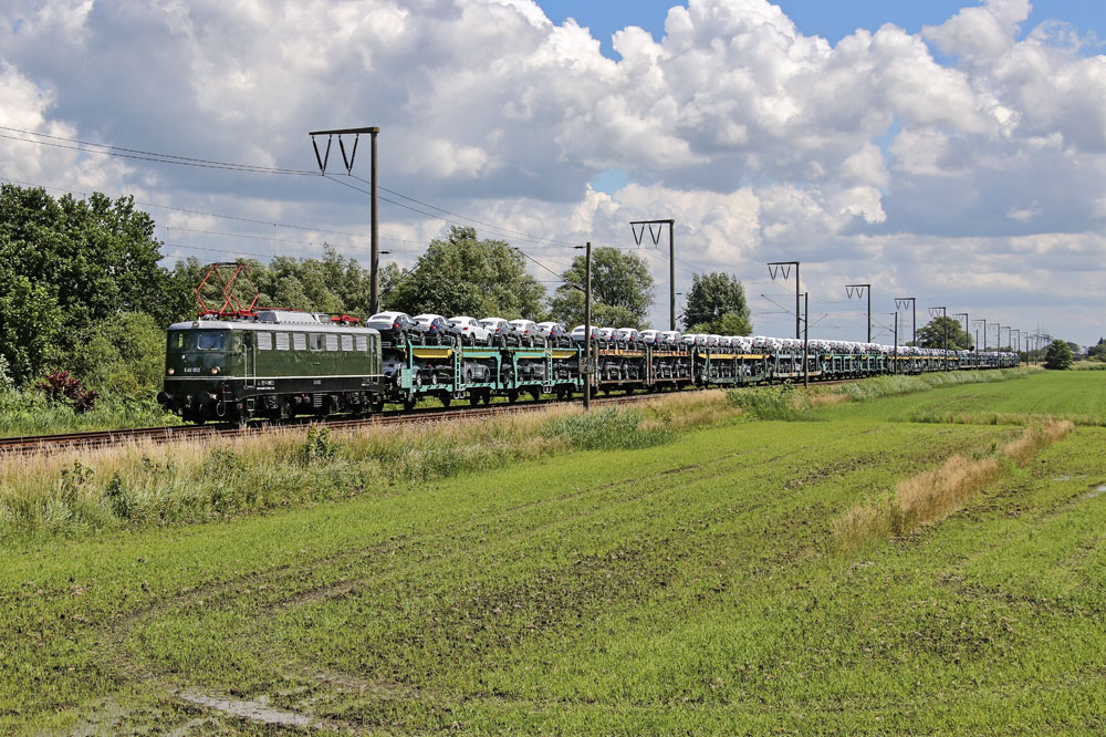 Mit E40 002 ist die dienstälteste, noch existierende E-Lok des Typs zu ihrem 67sten Geburtstag wieder in Dienst gegangen. Seit Mitte Juni 2024 wird sie vor Automobilganzzügen zwischen Bremen und Emden genutzt.