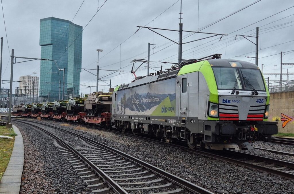 BLS Cargo hat sieben Panzer des Typs Leclerc der französischen Armee von Basel nach Domat-Ems und zurück befördert. Auftraggeber war die Bahnspedition Forwardis, eingesetzt wurden Rlmmns der französischen Armee.
