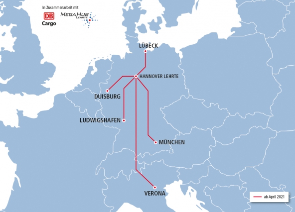 Wie geplant bindet der Intermodalzugbetreiber Kombiverkehr das MegaHub in Lehrte in ihr Zugnetz ein: Ab 06.04.2021 werden die Terminals Ludwigshafen, Lübeck CTL sowie Baltic Rail Gate und Duisburg an die Schnellumschlaganlage angeschlossen. Am 26. April zudem München-Riem und Verona Interterminal.