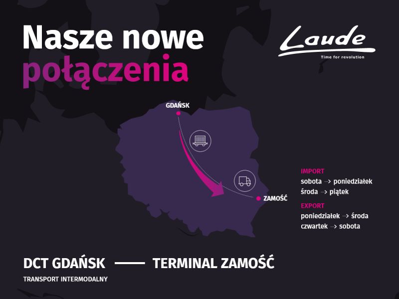 Laude Smart Intermodal, bekannt für den Transport von Stahlprodukten und Schüttgütern mit eigenen Containerlösungen und eigenem Rollmaterial, steigt in den Transport von Schiffscontainern ein. Ab 14.11.2020 betreibt das Unternehmen die neue Linie zwischen dem DCT in Danzig und dem eigenen Terminal in Zamość nahe der Grenze zu der Ukraine. Gestartet wird mit zwei wöchentlichen Rundläufen.