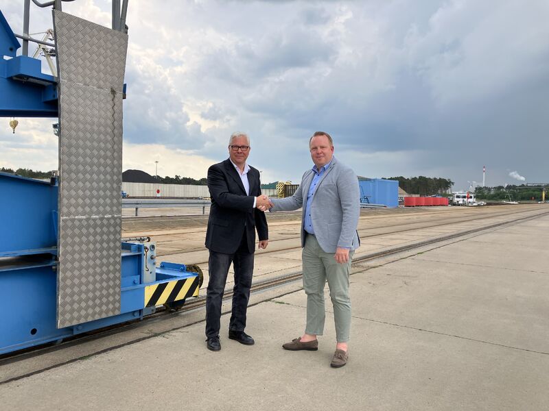 Von links: Dirk Sasson (Geschäftsführer Stadtwerke Schwedt GmbH) und Marco Passira (Bereichsleiter Güterverkehr der LOCON). Foto: LOCON