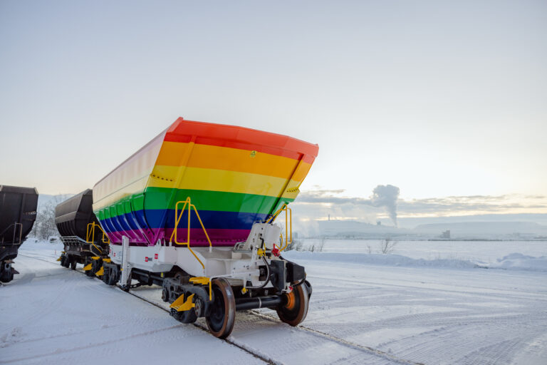 LKAB Malmtrafik hat den ersten von 100 georderten Neubau-Erzwagen in Regenbogenfarben lackieren lassen, um das Engagement des Unternehmens für Vielfalt zu unterstreichen.