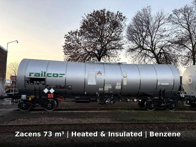 Der tschechische Waggonvermieter Railco vermeldet den Zugang neuer Zacens 73 m³ aus der Fertigung von Tatravagónka. Diese Wagen sind beheizt sowie isoliert und für den Transport von Benzol ausgelegt.